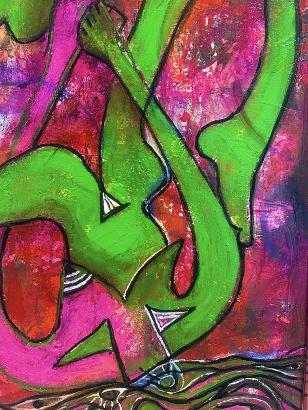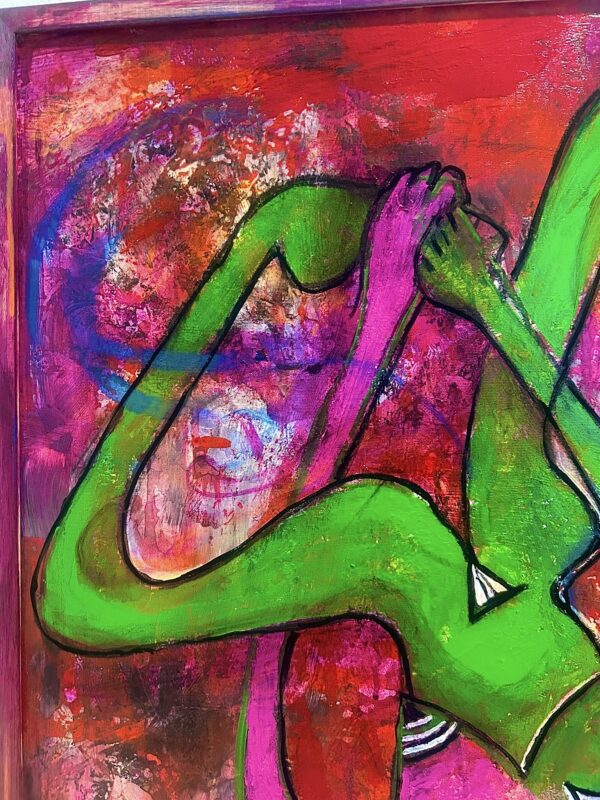 Artwork on supported wooden frame. Ready to hang. Framing on request.