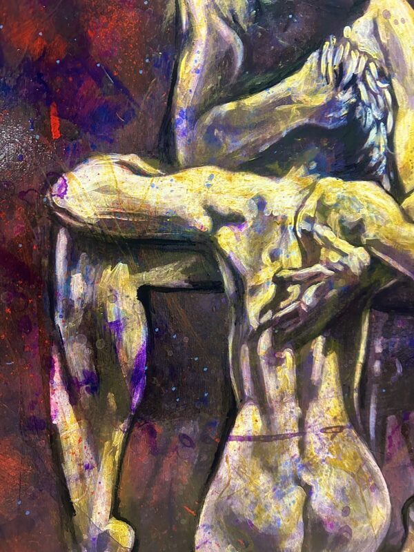 Artwork on supported wooden frame. Ready to hang. Framing on request.